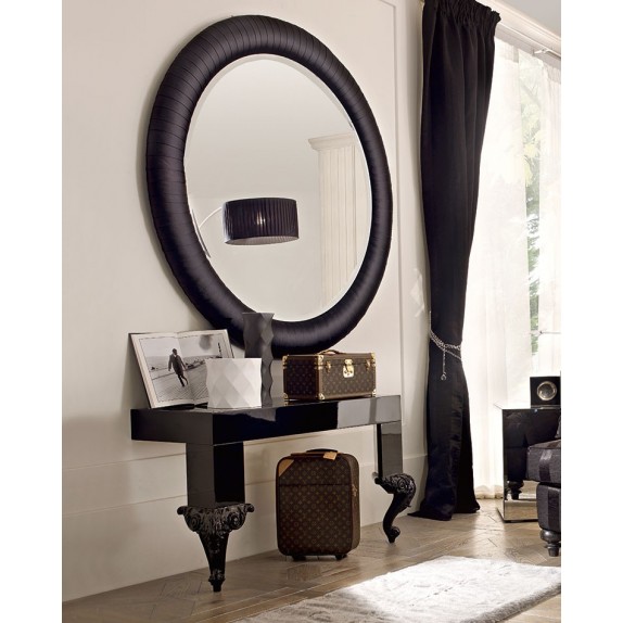 Console 1565 with structured wooden top, feet decorated with beautiful carvings, black finish. W.150 D.60 H.88.