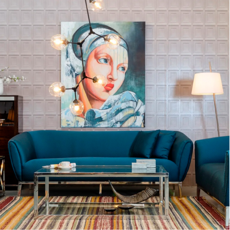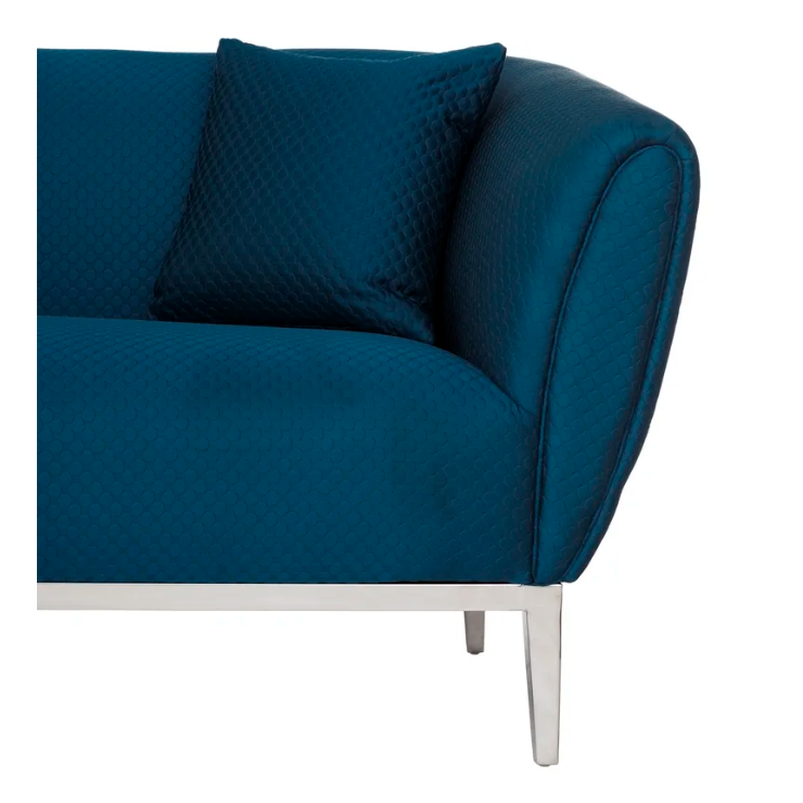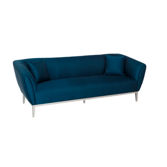Sofa 105500 pine wood structure, stainless steel feet, foam padding, upholstery in blue fabric 100% polyester , L.228 P.87 H.80.