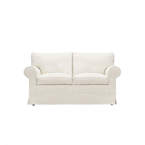 Two-seater sofa 692 design Amonymous by MVSEVM. It is in solid wood covered with foam, back cushions and seat in goose down and fabric cover, removable. Dimensions W 164 cm D 86 cm H 80 cm.