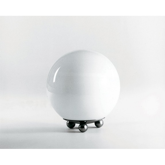 Table lamp 598 design Amonymous by MVSEVM. With chrome-plated brass base and polished brass spheres, the diffuser is in opaline glass. Dimensions: diameter 24 cm H 27 cm.