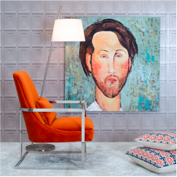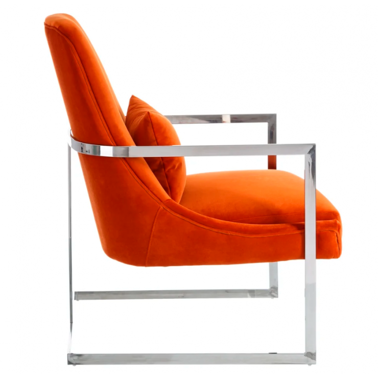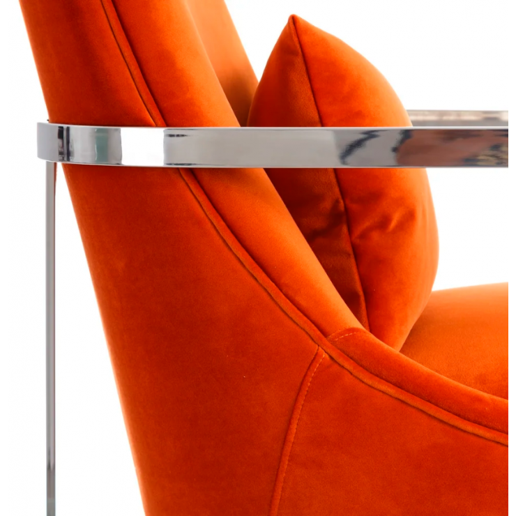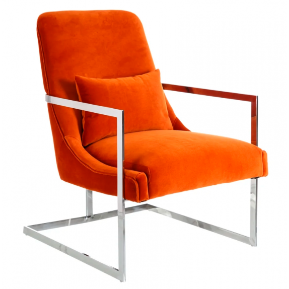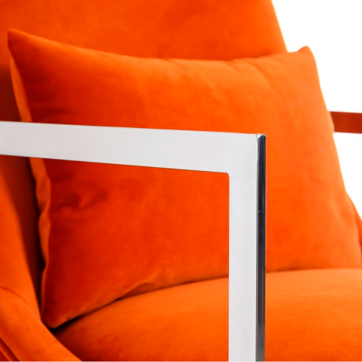 Armchair 105494 pine wood frame with stainless steel legs, foam padding and upholstery in orange 100% polyester fabric, L.67 P.83 H.97.
