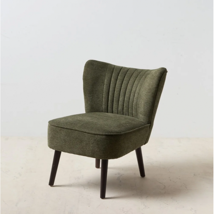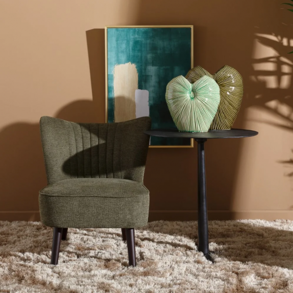 Armchair 121,889 eucalyptus wood frame, foam padding and upholstery in green 100% polyester fabric, rubber legs, L.59 P.70 H.72.