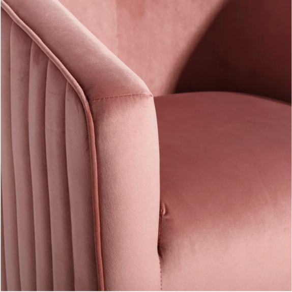 Armchair 107,937 pine wood frame with metal legs, terry cloth padding and upholstery in 100% polyester pink fabric, L.72 P.62 H.77.