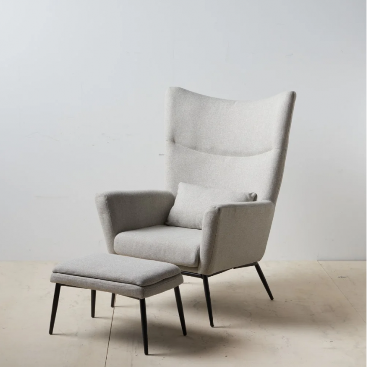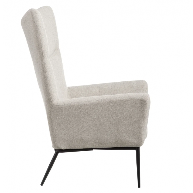 Armchair and Pouf 121.804 metal frame and legs, foam padding, upholstered in 86% viscose and 14% rayon, L.74,50 P.85 H.111.