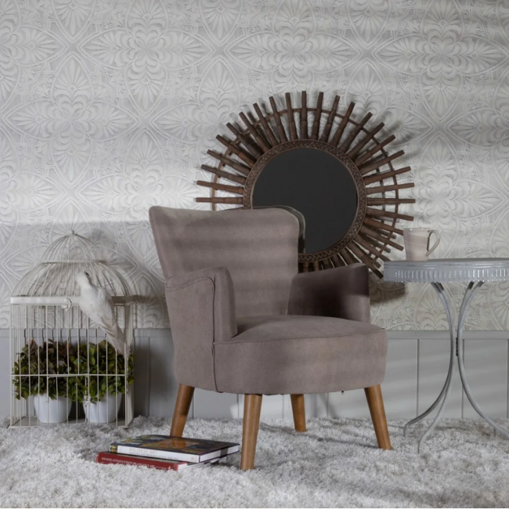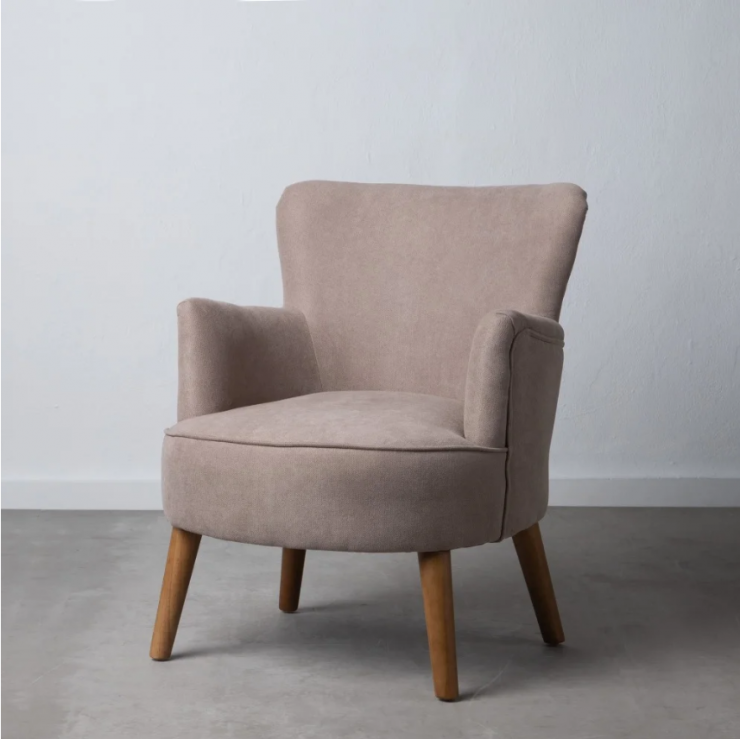Structure and legs in rubber wood, foam padding, upholstered in 100% polyester fabric, L.63 P.54 H.79,50.