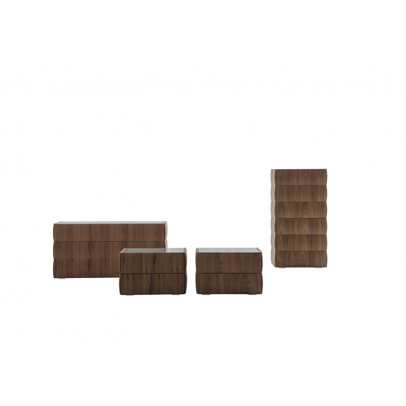 Venice Night is perhaps the most marked example of how the technique can end in sweetness, in refinement. The material is MDF, micro-embossed and laser worked, which creates a capitonné effect and vivifies, softens, giving a rigid structure the appearance of a soft cushion. The colours range from matt white, to black, to beige, up to matt champagne. A further version is now available, perhaps even more elegant and striking: a canaletto walnut, to give a classic tone to this extremely innovative program.
