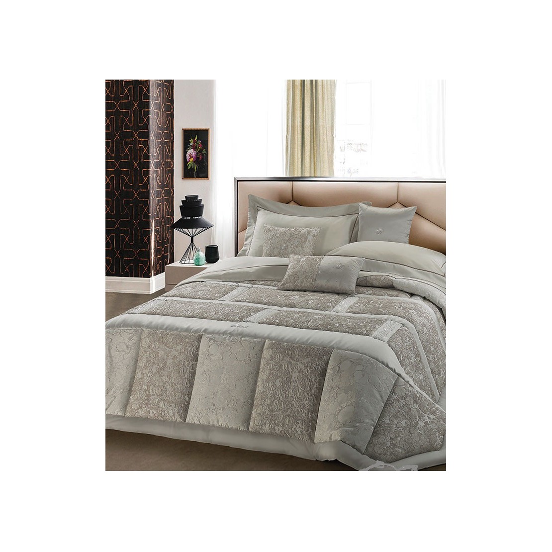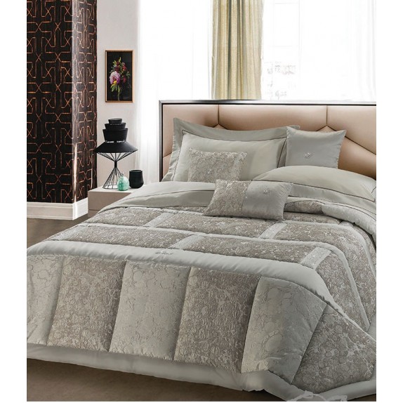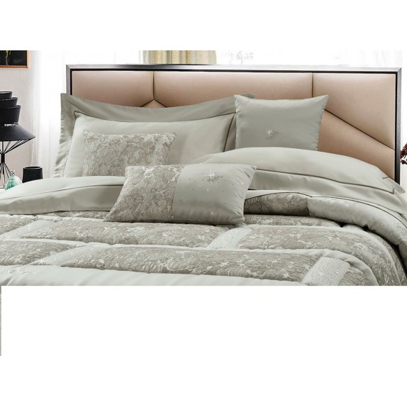 David Ariel quilt in Patchwork L 270 P 270 jaquard fabric finished with sparkling crystals both in the quilt and in the rectangular cushion finished in two fabrics L 35 H 55 art.352. The price does not include cushions but only the rectangular cushion.