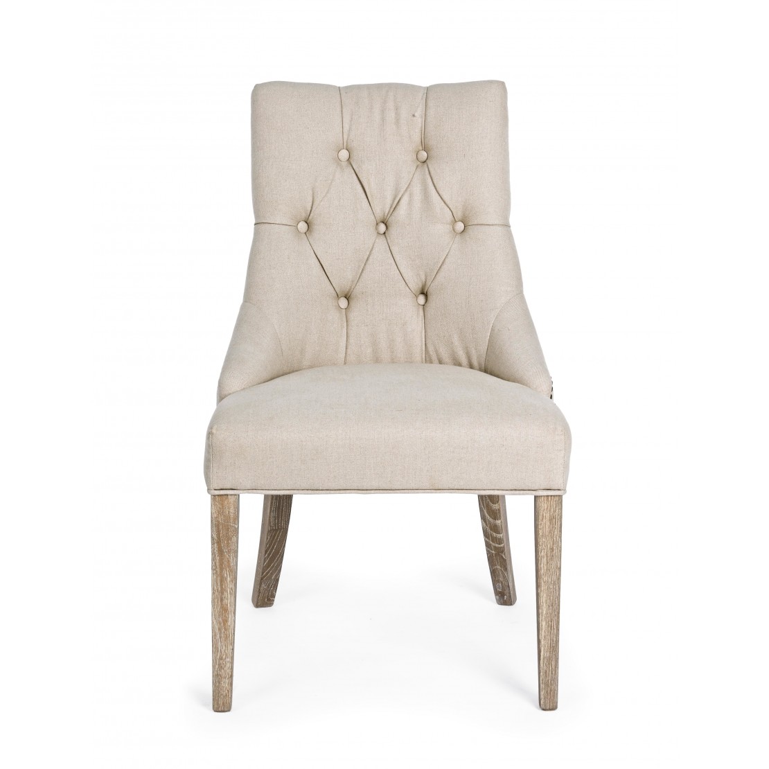 Structure in oak wood, linen covering. Backrest with metal studs and Zinc plated handle.