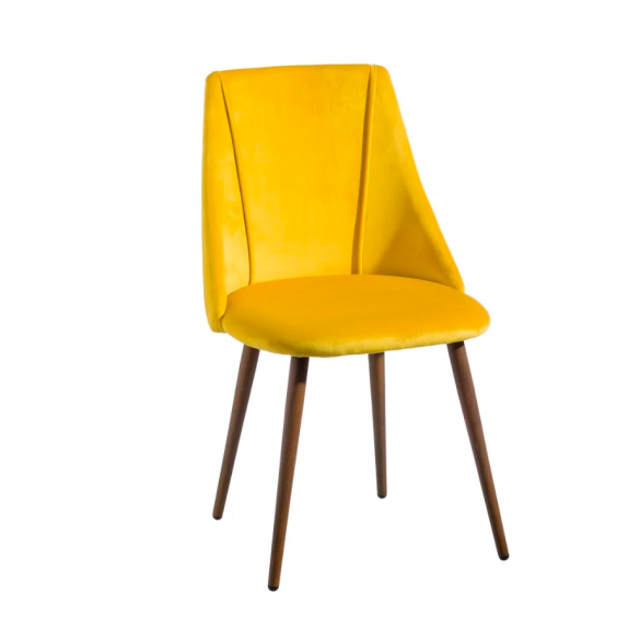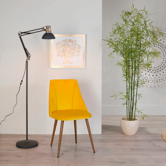 Chair 103767 structured metal chair with foam padding and upholstery in yellow velvet 100% polyester, L.49 P.54 H.83.
