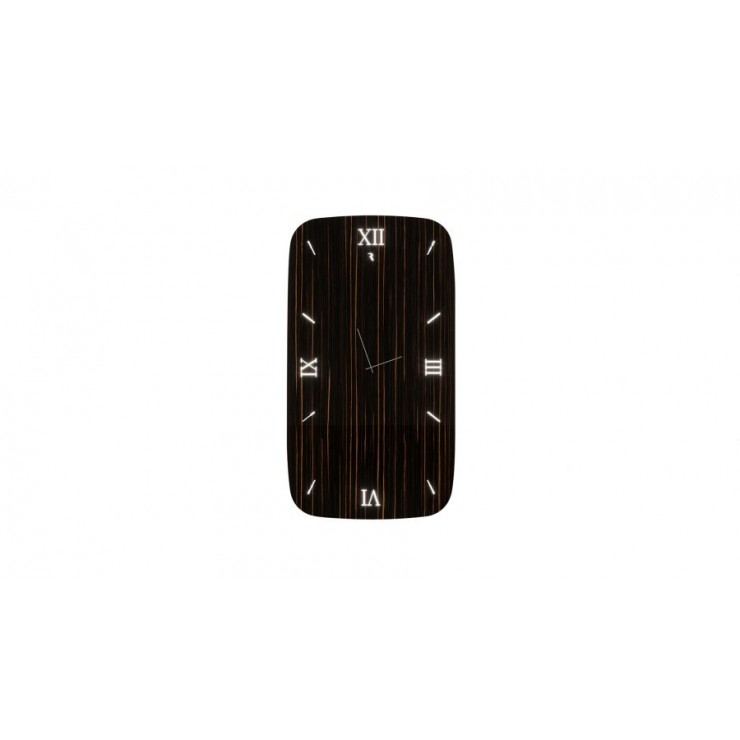 Collection of shaped watches with structure in Marble Reflex White or wood Reflex hands in titanium and numbers in sandblasted white. Modular with shaped mirrors in smoked mirror glass.