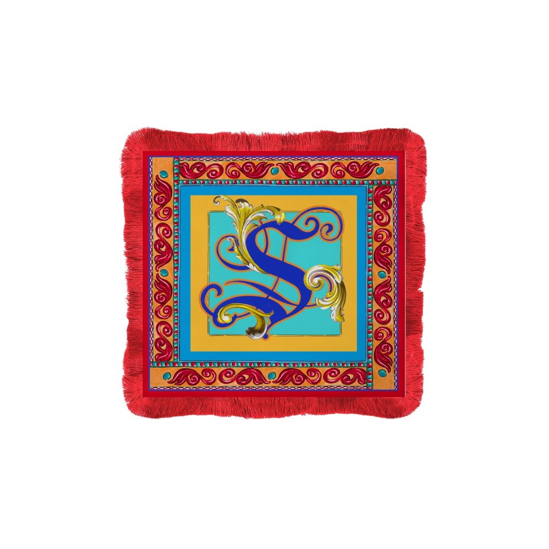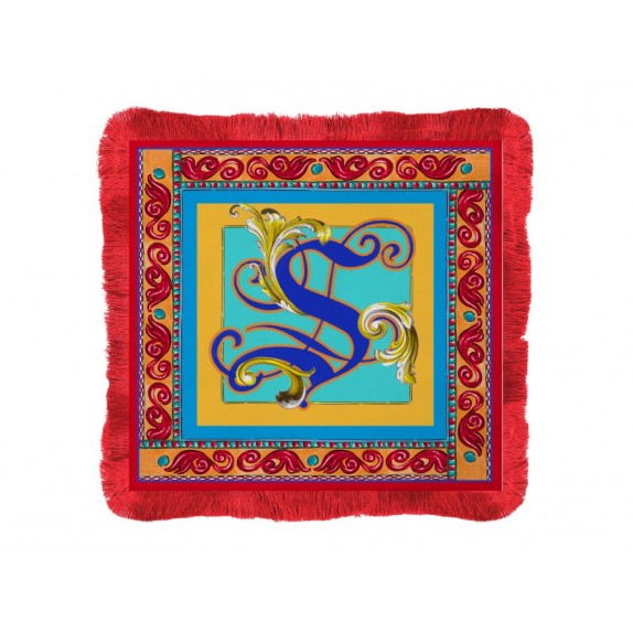 Cotton placemat with Sicilian decoration and letter S, 38x38.