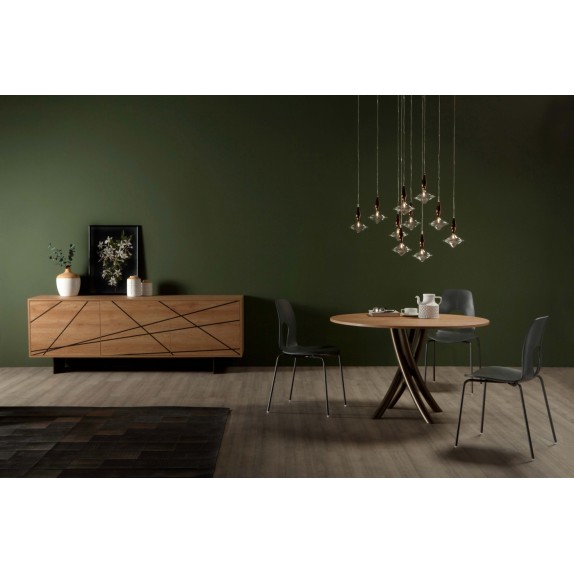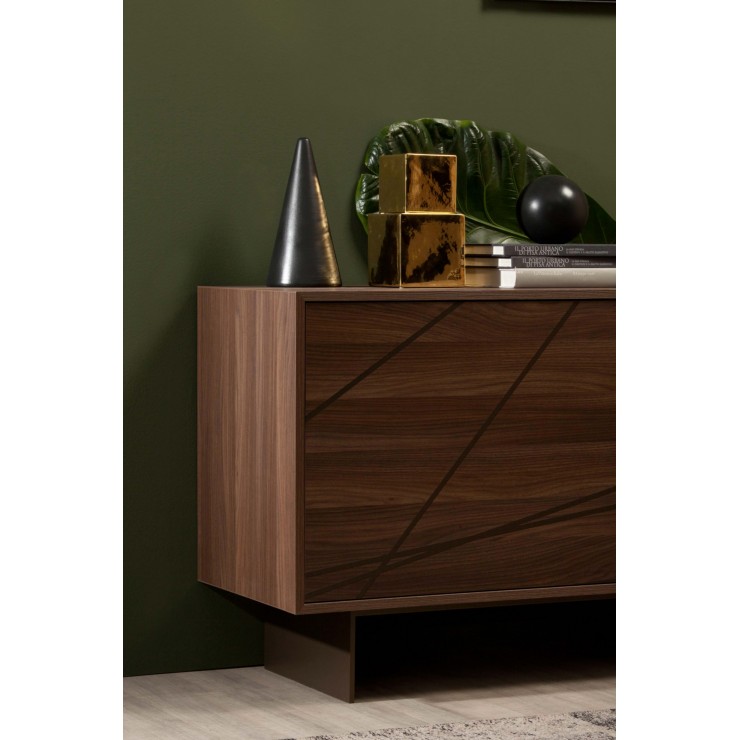 Straight lines cross, decontextualizing the simple form of Maya. A rectangle that divides, breaks and reunites in the delicate and minimalist pattern of the doors, in a bronze-toned color that creates effects of extraordinary perspective elegance. The two finishes, Canaletto walnut with relief effect, or light oak with relief effect, make Maya perfect in every room.