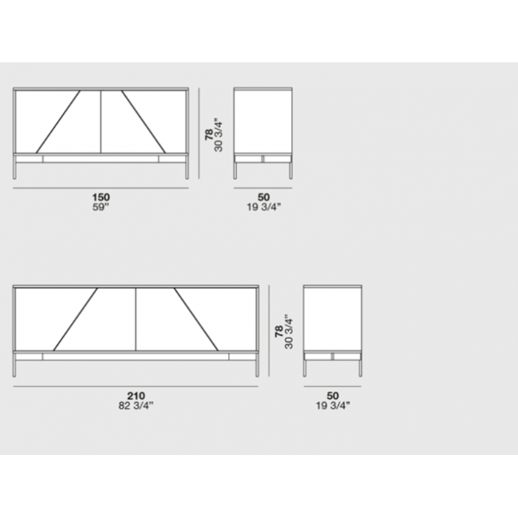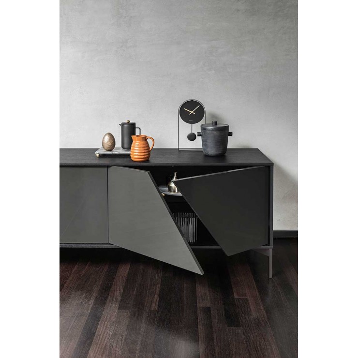 KENDO is a sideboard characterized by a particular geometric game of the doors: each door has a cut of 30 pieces. that divides it into two parts not perfectly coplanar but slightly offset, giving the superficie a raffi born chiaroscuro effect. KENDO is proposed in the ennobled, Fashion wood and lacquered finiture. It is also available with doors, structure and top in finiture or different color.