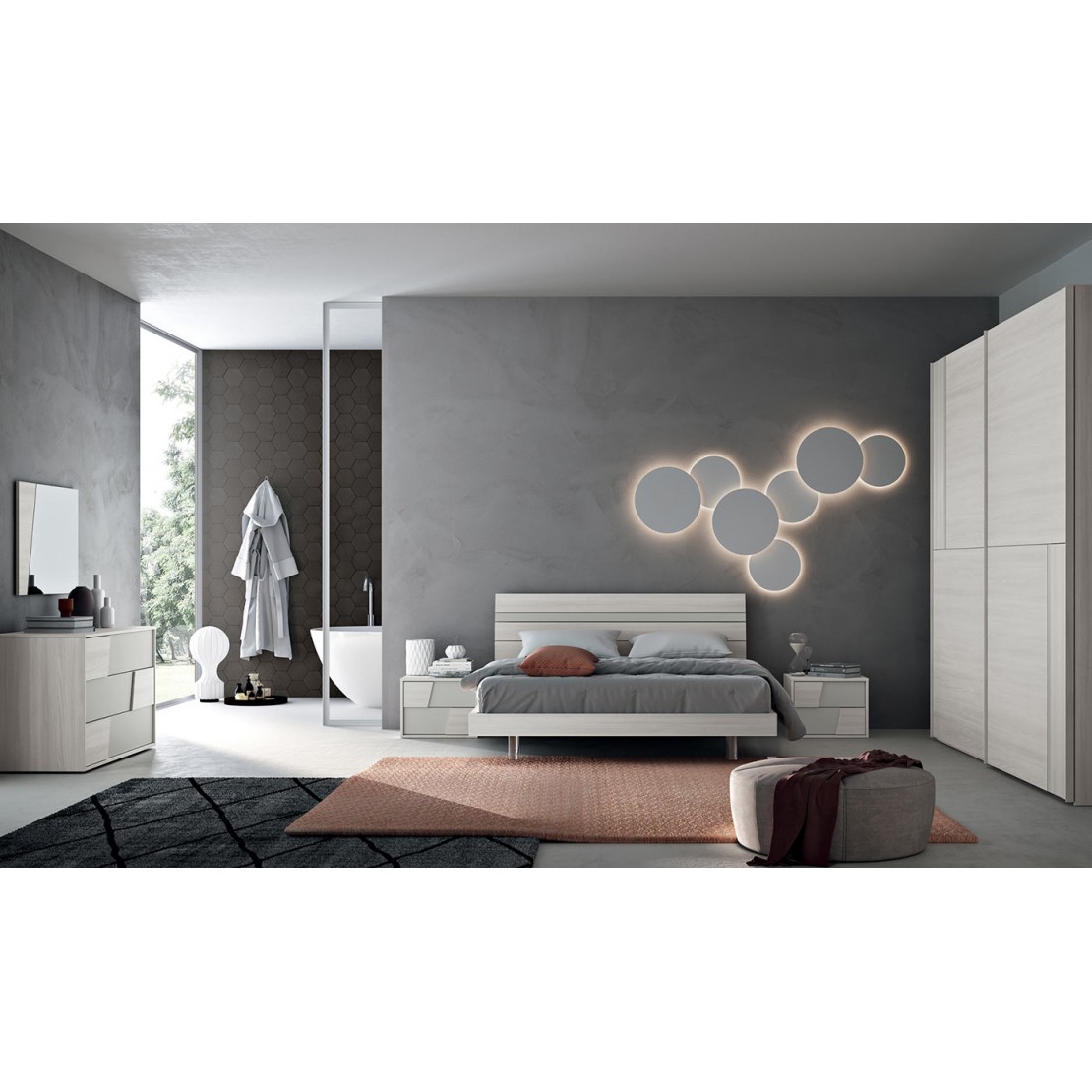 Sliding wardrobe in bleached elm and silk gray