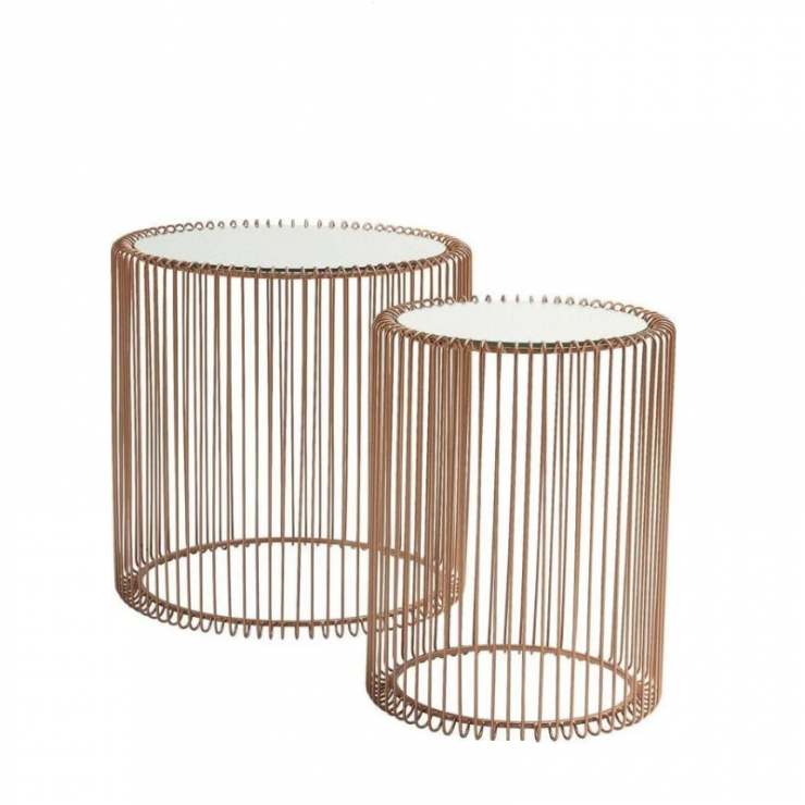 Thanks to the structure with metallic wire graphics, the tables are almost transparent and also allow you to show off rugs with geometric motifs or kilims.