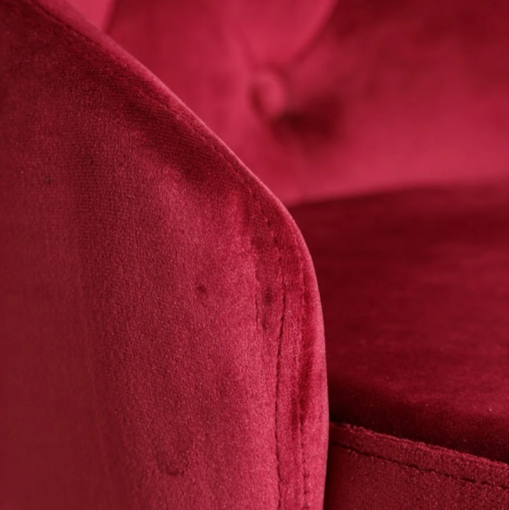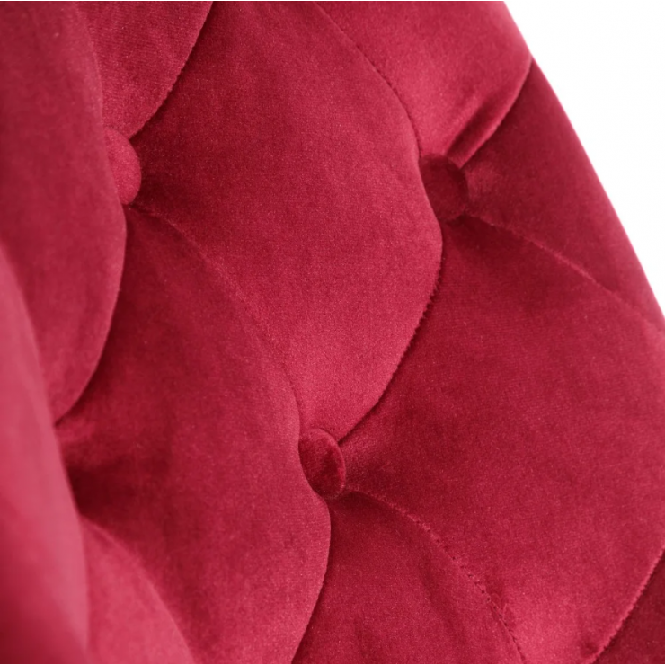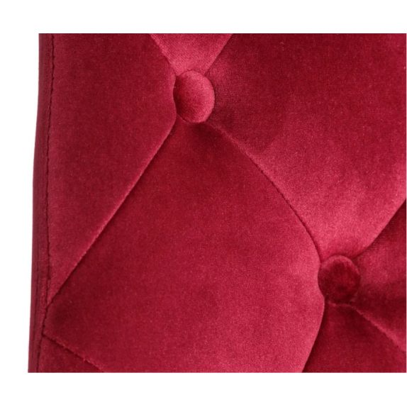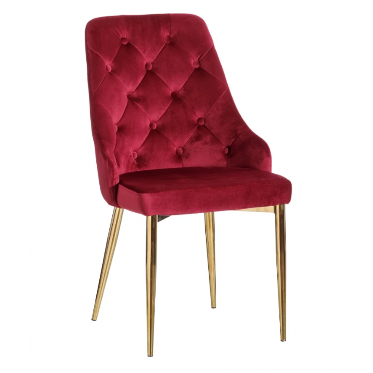 Chair 121779 with gold coloured metal legs, padded back and seat in foam, upholstered in burgundy fabric 100% polyester, special back in capitonnè, L.48 P.59 H.93.
