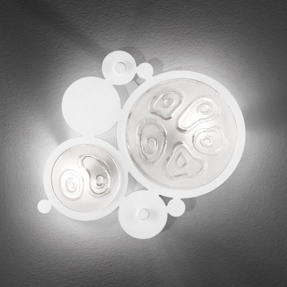 Modular wall and ceiling lamp with white painted metal and satin glass diffuser.
