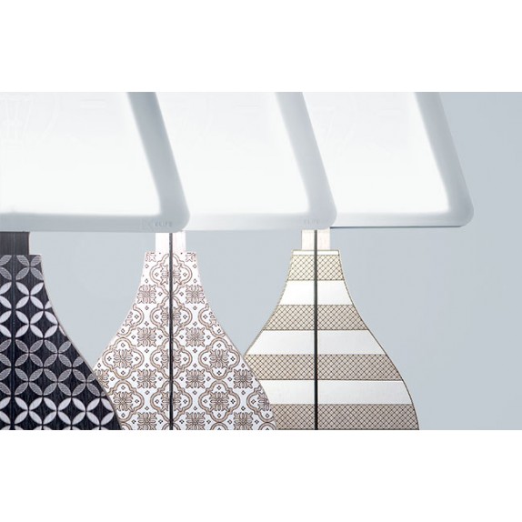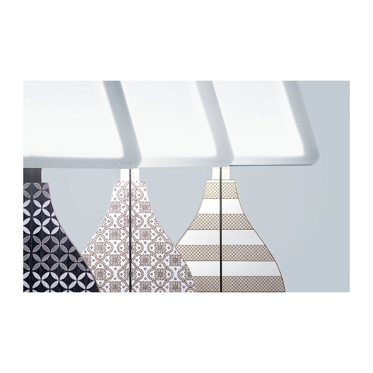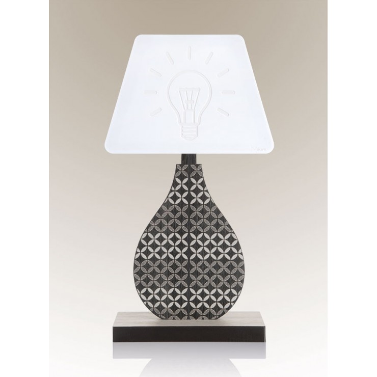 Modern table lamp 100% Made in Italy, with LED bulb (model 5050 triple chip, color temperature 2900k, absorption 4.5W), lampshade in Krion K-Life and wooden base, worked with the latest generation technologies . The lampshade made of Krion K-Life, an innovative material that reacts to light, favors the activation of a photocatalysis process that purifies the air in the room by transforming polluting and toxic particles into natural elements that are not harmful to humans, eliminates completely the bacteria that settle on its surface and degrades the harmful chemical compounds present in the products used for cleaning the house. Its perfectly smooth and homogeneous surface is easy to clean and reduces the use of detergents. An authentic expression of Made in Italy, the wooden table lamp and Krion K-Life thus, in addition to creating an elegant and suggestive atmosphere, helps to improve the air quality of the home and to generate a feeling of cleanliness and well-being in those who lives.
