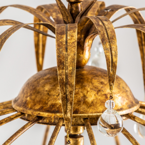 Ceiling lamp, color Gold, Style Classic. Eucalyptus wood, glass and iron structure.