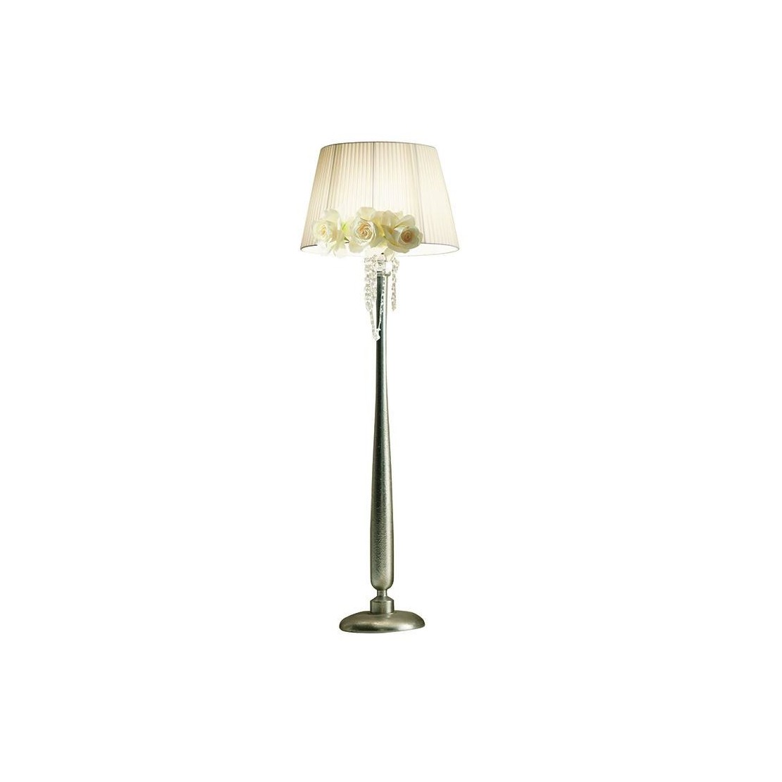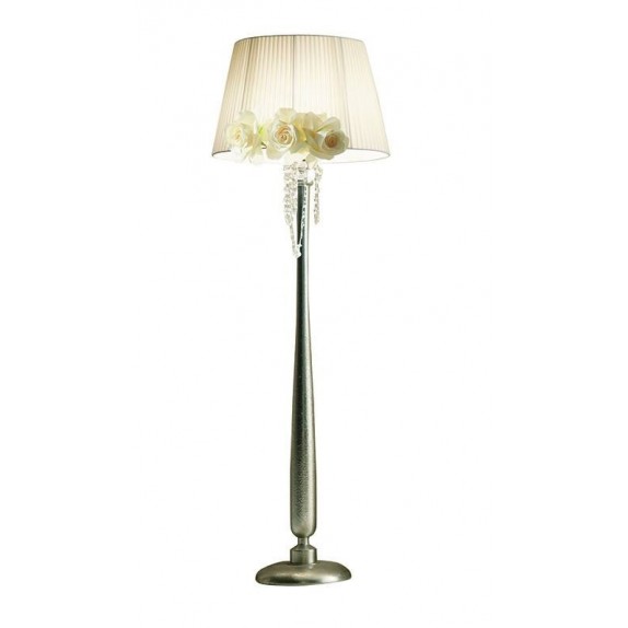Floor lamp Rose Collection Avenanti foot in Silver Leaf with crystal chains pendants pleated lampshade with roses Ø 60 H 162 .