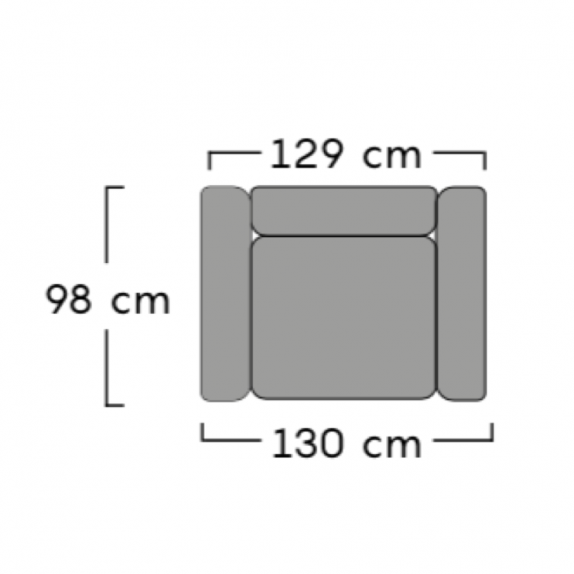 Armchair: W.129 cm x D.98 cm x H.98 cm