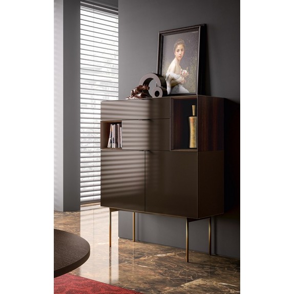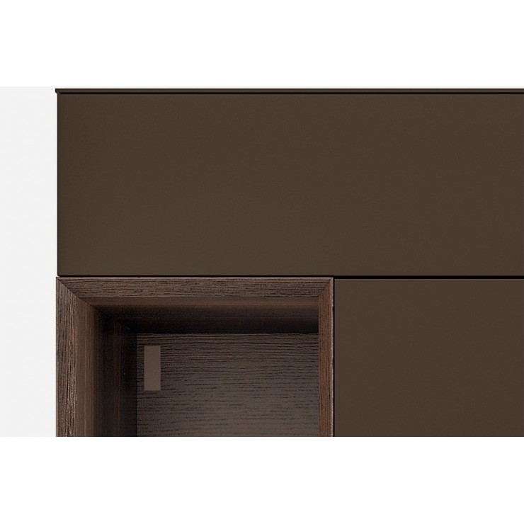 "Brema" model sideboard, external structure, glossy chocolate-colored fronts and top. Finishes of modules in Burgundy.