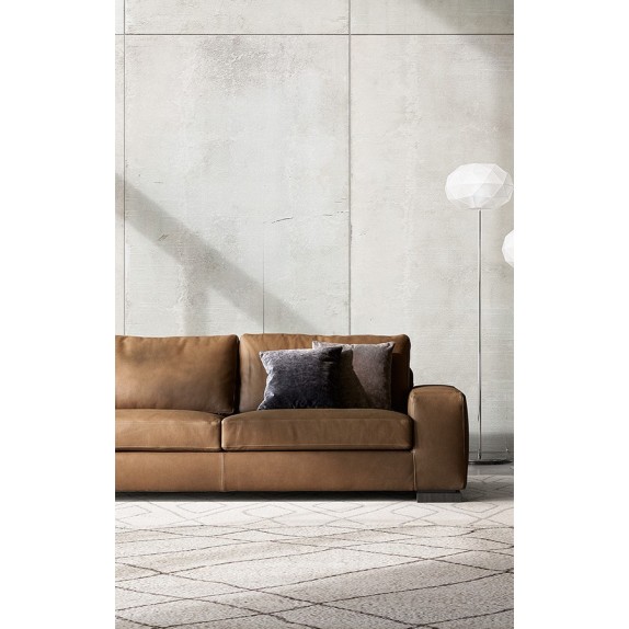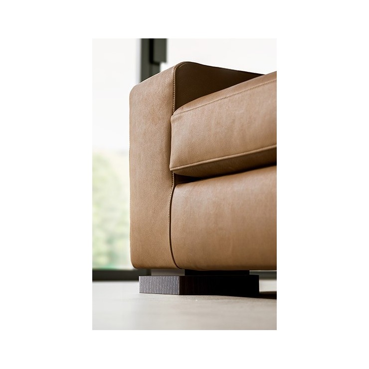 Sofa model Meridiano proportions with wide armrests to increase comfort. Solid and square feet made of wood, make Meridiano a reassuring and timeless sofa. Finishes Vintage leather sofa 32 with feet in Burgundy.