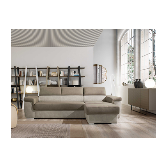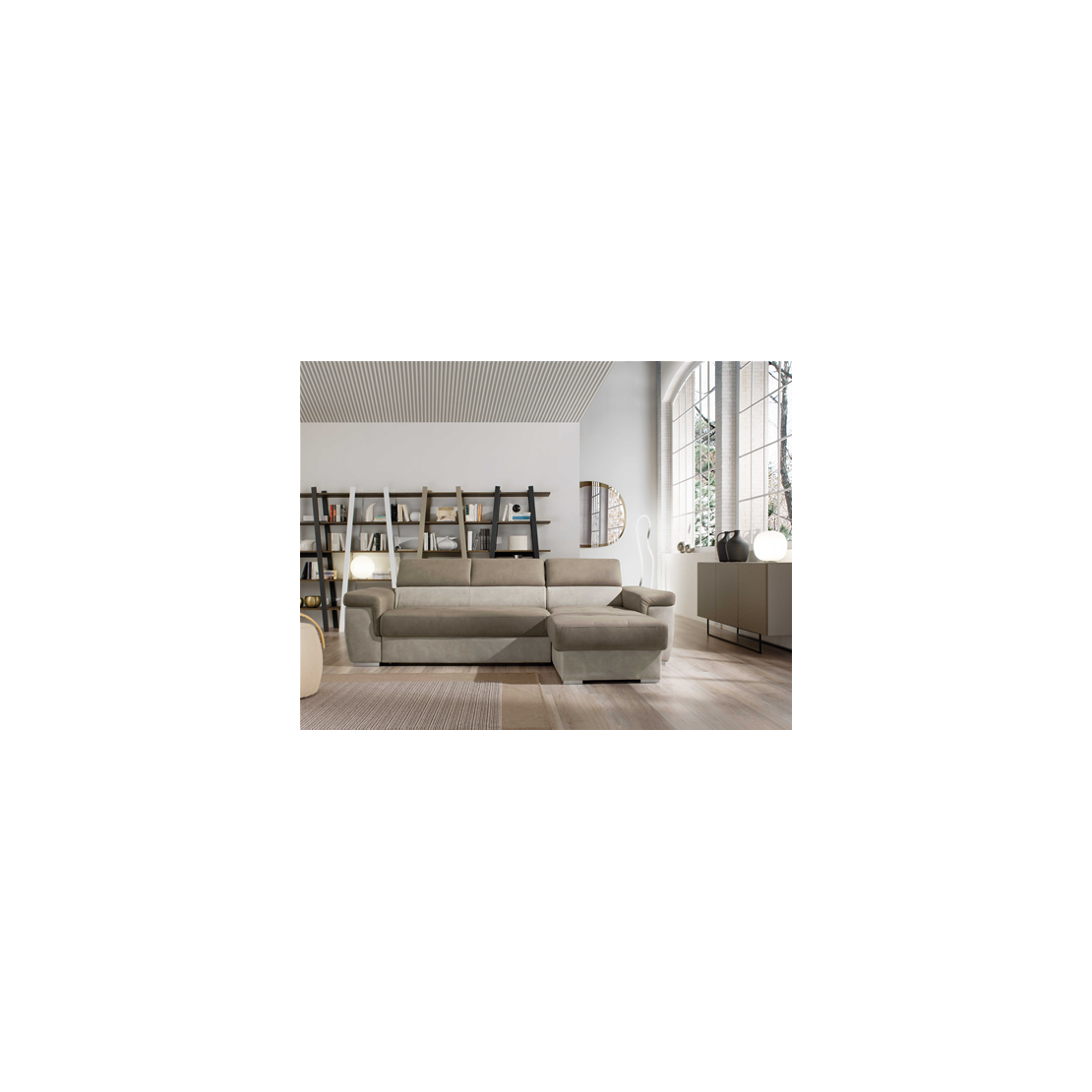 Comfort model corner sofa with adjustable headrest, with pull-out bed and storage element. Reversible.