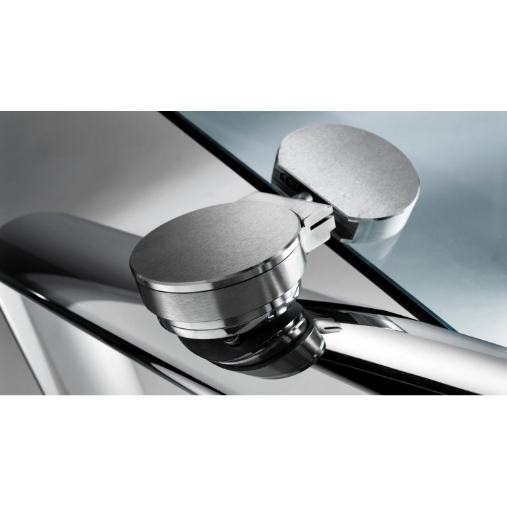 Legs: round section in brushed steel; oval section in satin aluminum, bright chrome, bright black nickel, brass, dark brass, titanium, dark titanium, in 24 mm thick curved glass or 19 mm thick extra-clear glass.