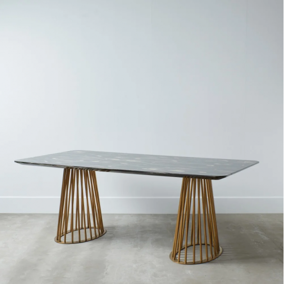 Table 121875 top structure in wood and legs in stainless steel in gold colour, L.200 P.100 H.76.