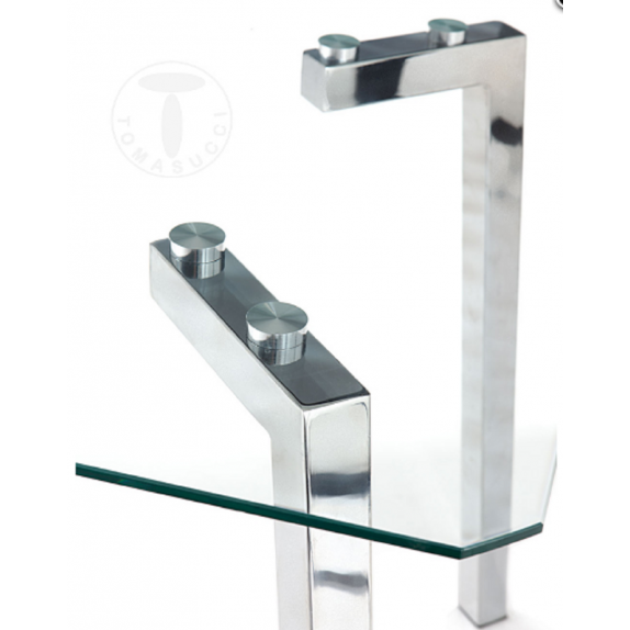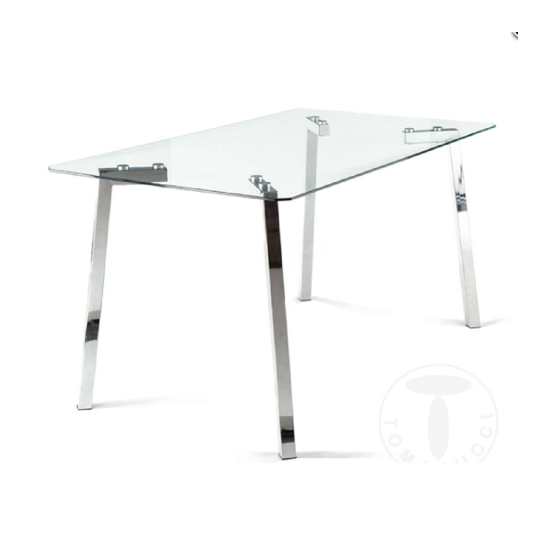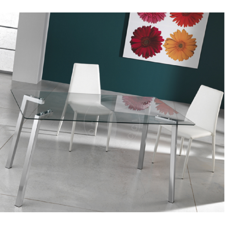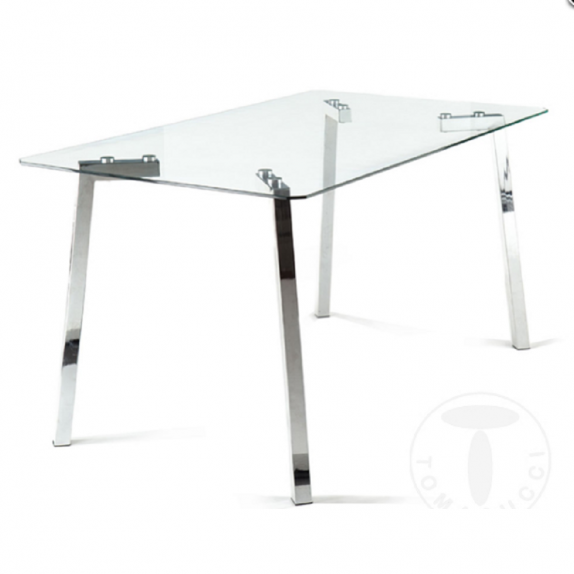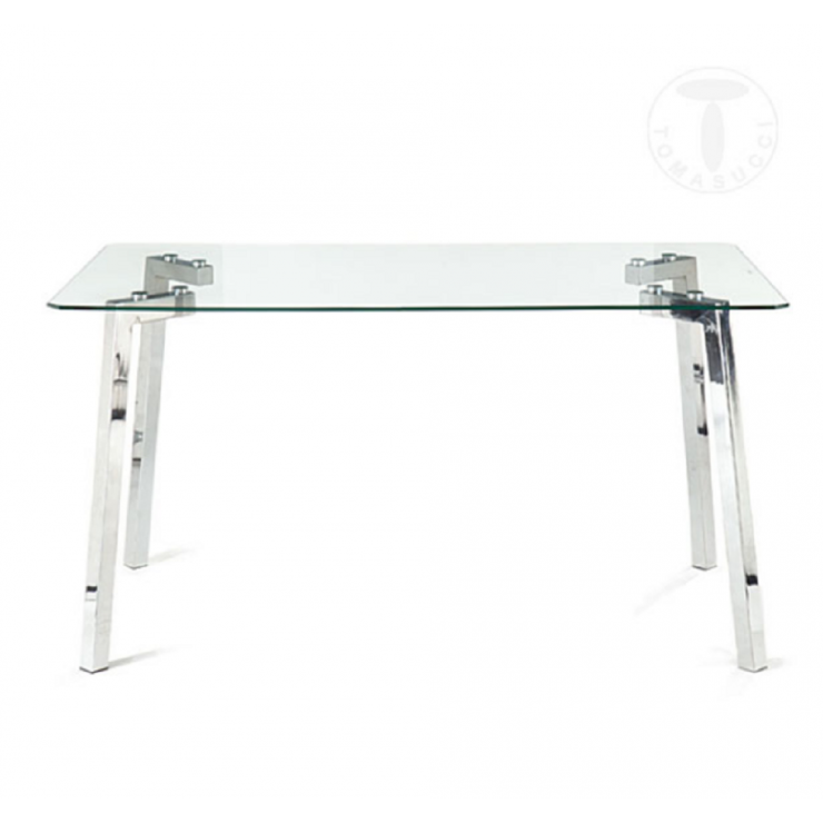 Rectangular table KIRK tempered glass surface thickness mm 0,8 chromed meta legs size cm L140 X P80 H75