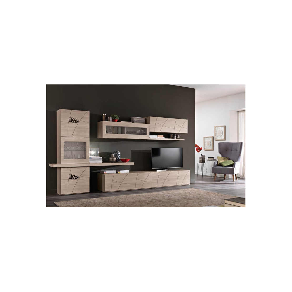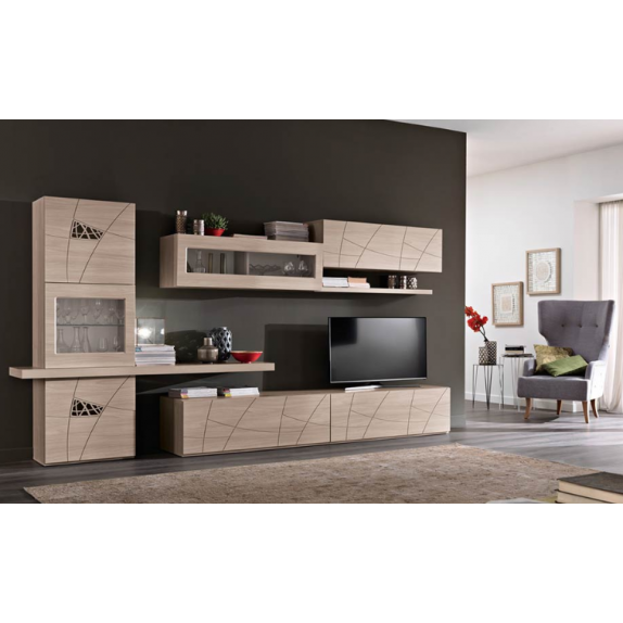 Equipped Wall with structure in walnut nature composed of: space TV, 3 doors, 2 glass doors and 2 free shelves .