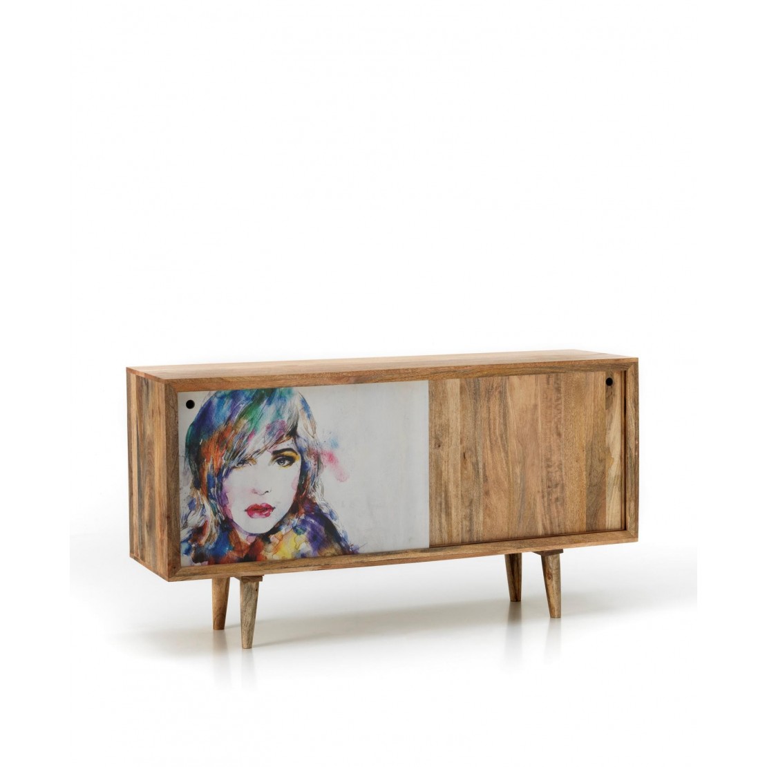 Madia (160 x 85 H cm) modello KAMALA con struttura in Legno di Mango in finitura marrone e gambe di Legno in finitura marrone. Italian Design - Made in Italy. Tempi estimati di produzione 4 - 5 settimane