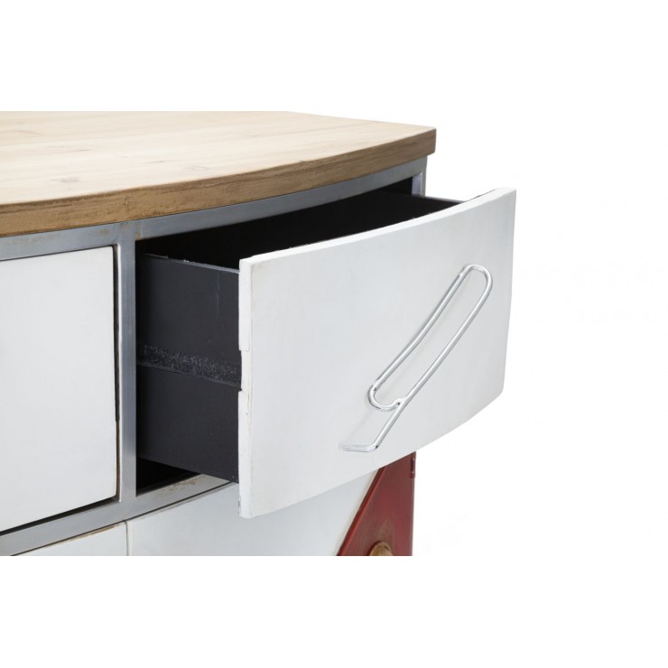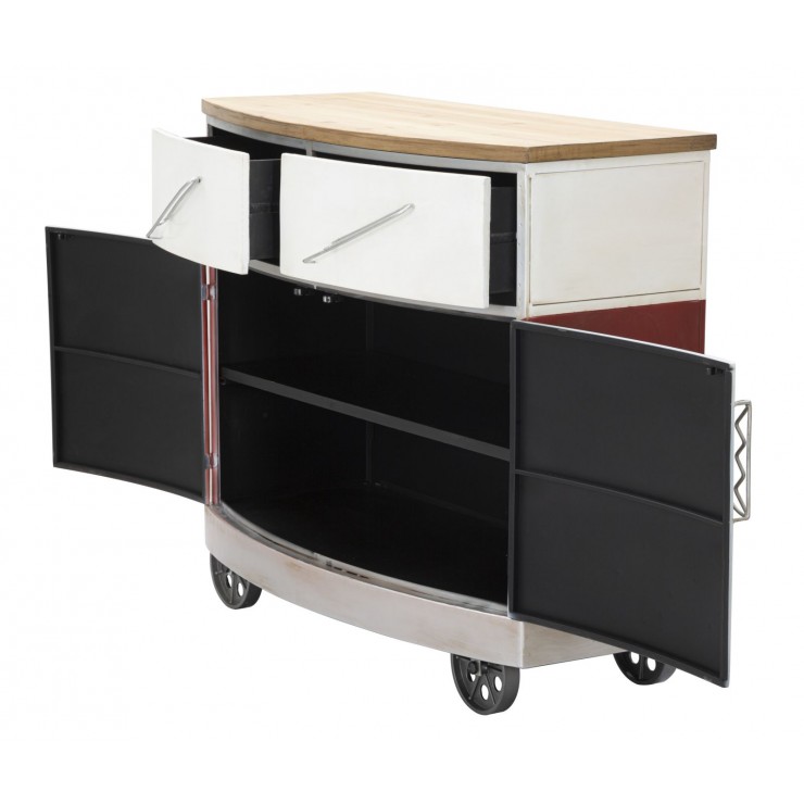Armoire en fer, bois de sapin et MDF, équipée de 2 portes et 2 tiroirs. 90 x 81 x 42 cm.
