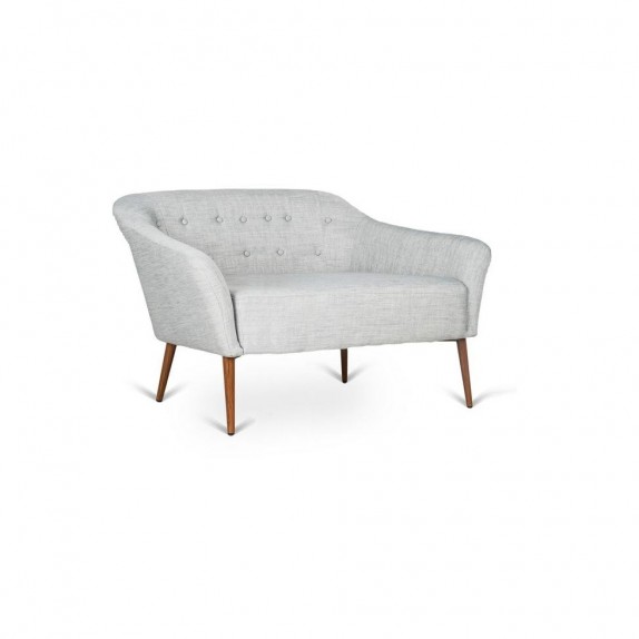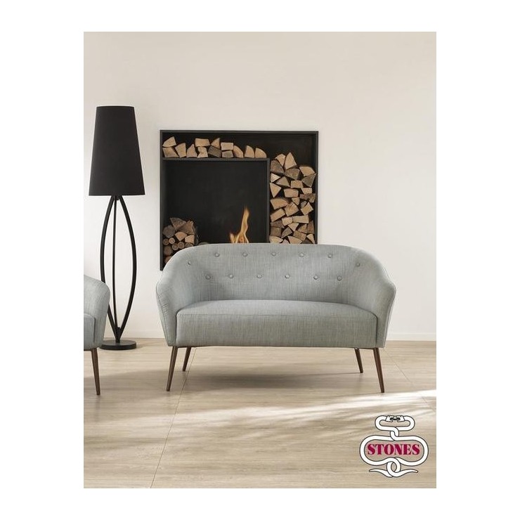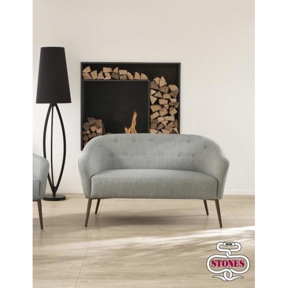 Canapé Ulisse deux places avec structure en métal pieds en bois , rembourrage en mousse de polyurethane et ouate de polyester .Revêtement 100% en tissu gris .