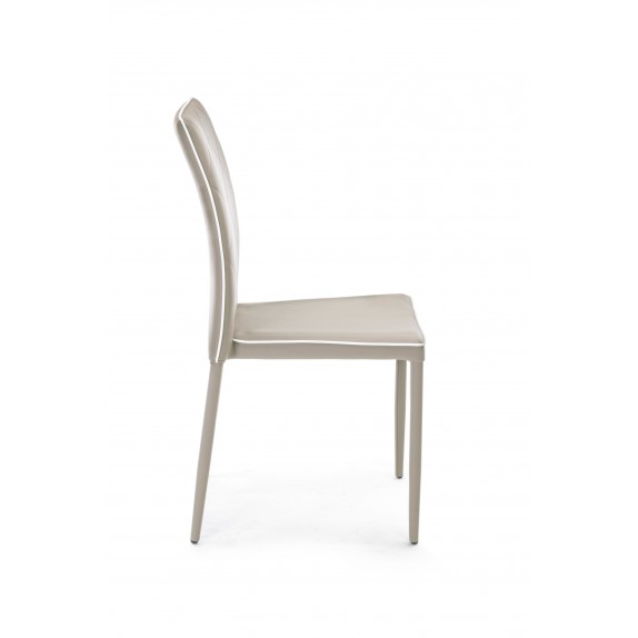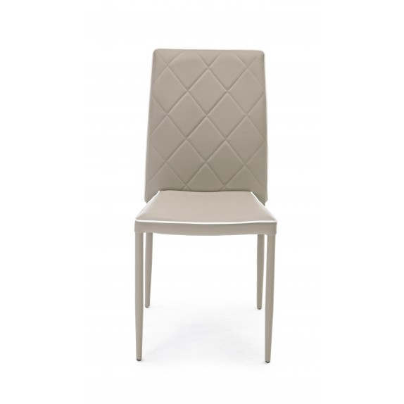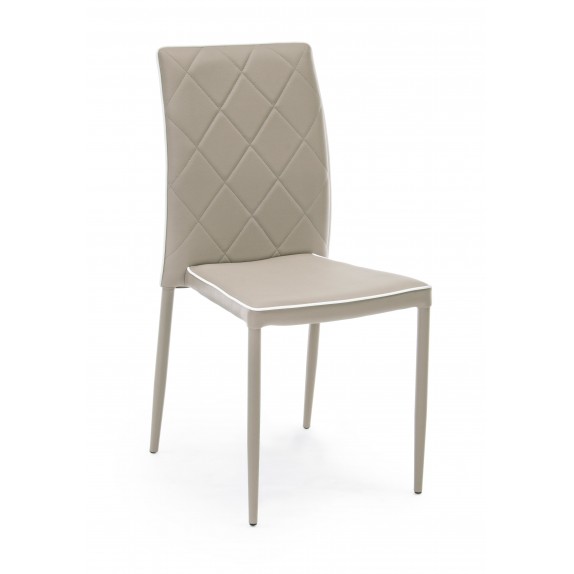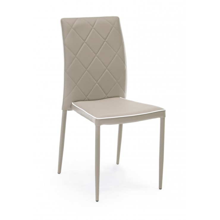 Structure en Fer . Rembourrage mousse polyuréthane. Assise et jambes revêtues en éco-cuir (PU)avec bordure contrastée . Dossier matelassé