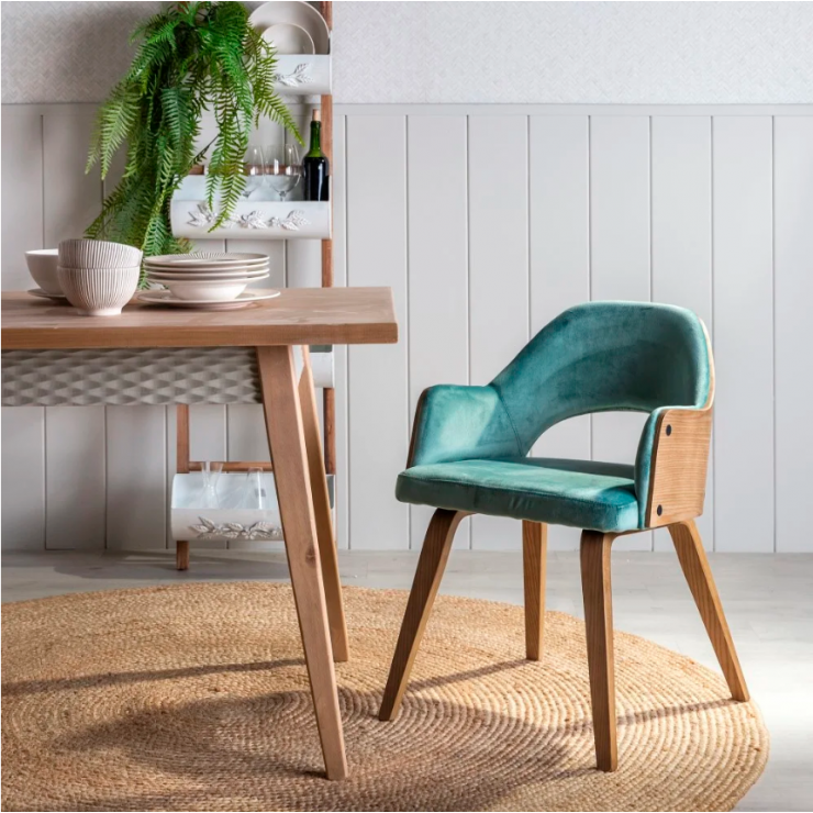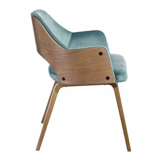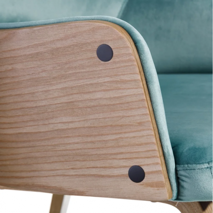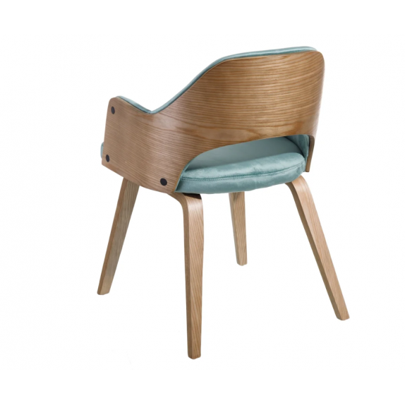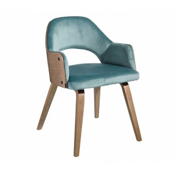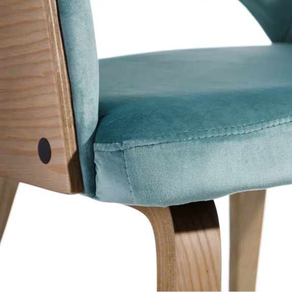 Chaise 108.685 structure en bois et rembourrage en éponge avec revêtement en velours azur 100% polyester , L.52 P.55 H.77.