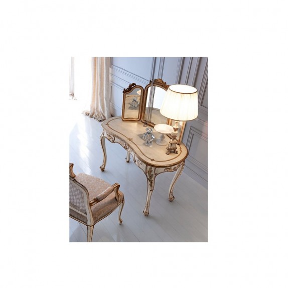 Coiffeuse Classique Grifoni Silvano 3614 de style romantique. Finition:couleur Blanc Vieilli, couleur Mecque et couleur Gris Torturelle , L 116 P 65 H 76 , avec miroir à trois faces L.82 H.60.