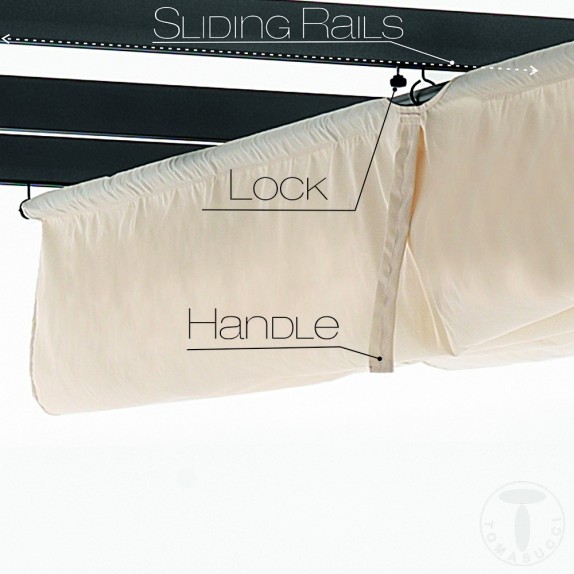 Toile coulissante en polyester enduit de PVC 180 g / m2. Couleur blanc écru.