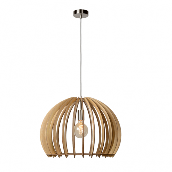 Lustre suspendu en bois, finition Naturel, 1x60W / 230V / A ++ - E, H.167 D.50.