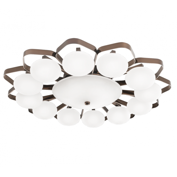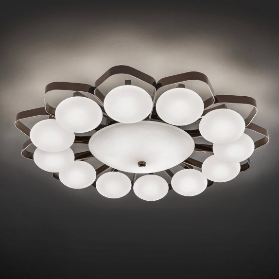 Le plafonnier Italamp Teo est une lampe moderne pour l'intérieur, en métal avec finition nickel doré et diffuseurs en verre satiné.