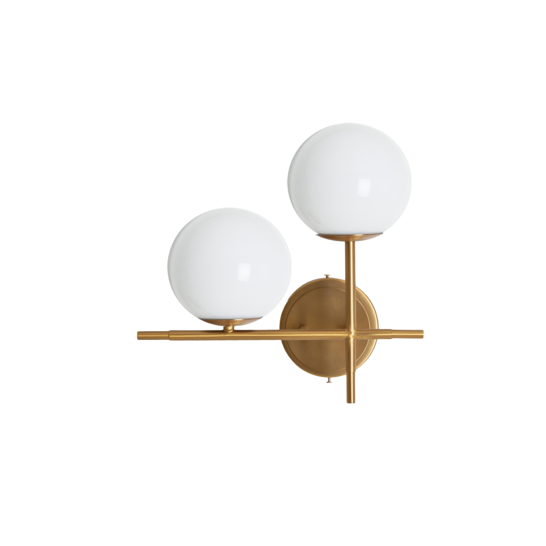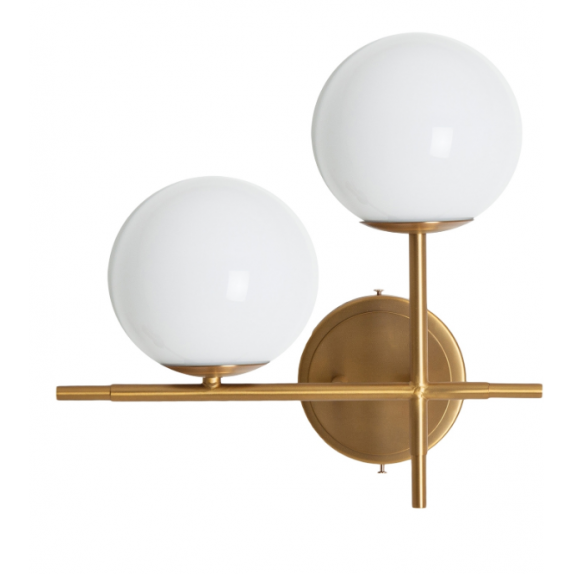 Lampe murale, couleur Blanc/Or, Style Art Deco. Structure en fer et verre.