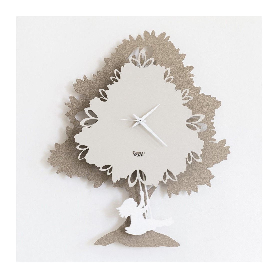 Horloge en fer, en forme d'arbre, finition beige et noisette, L.33 P.5 H.40.