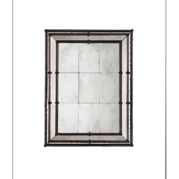 Miroir 1140, cadre en verre de Murano fait à la main, finition noir, L.91 H.124.
