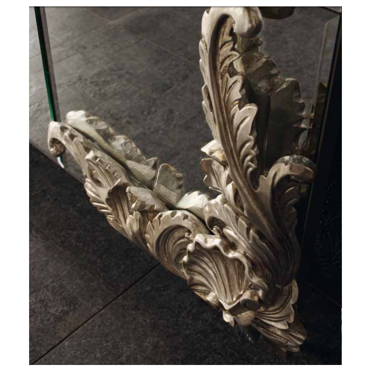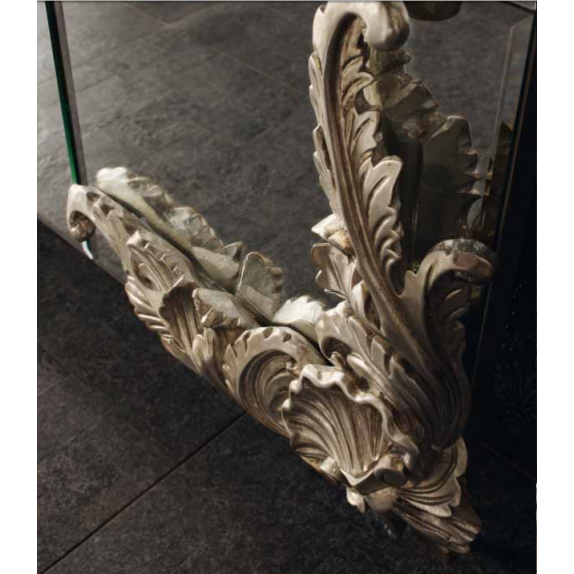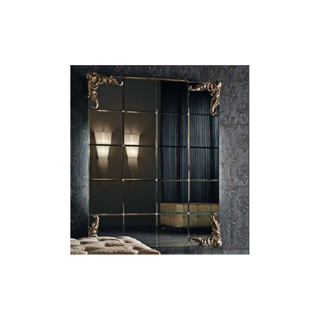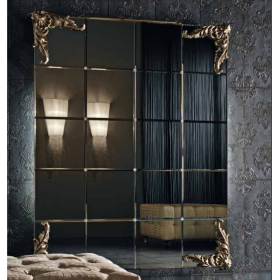 Miroir 2900 composé d'éléments biseautés, orné de frises en bois sculpté,Finition à chaud argent , L.170 H.210.