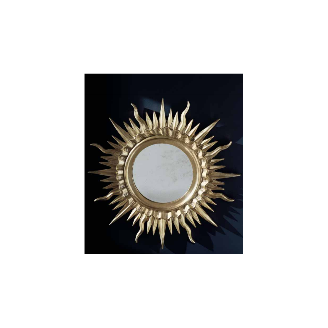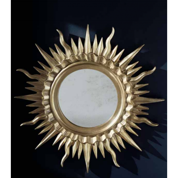 Miroir CLA.F23, cadre en bois, miroir central antique , Finition à chaud feuille d'argent , diamètre 106 cm.