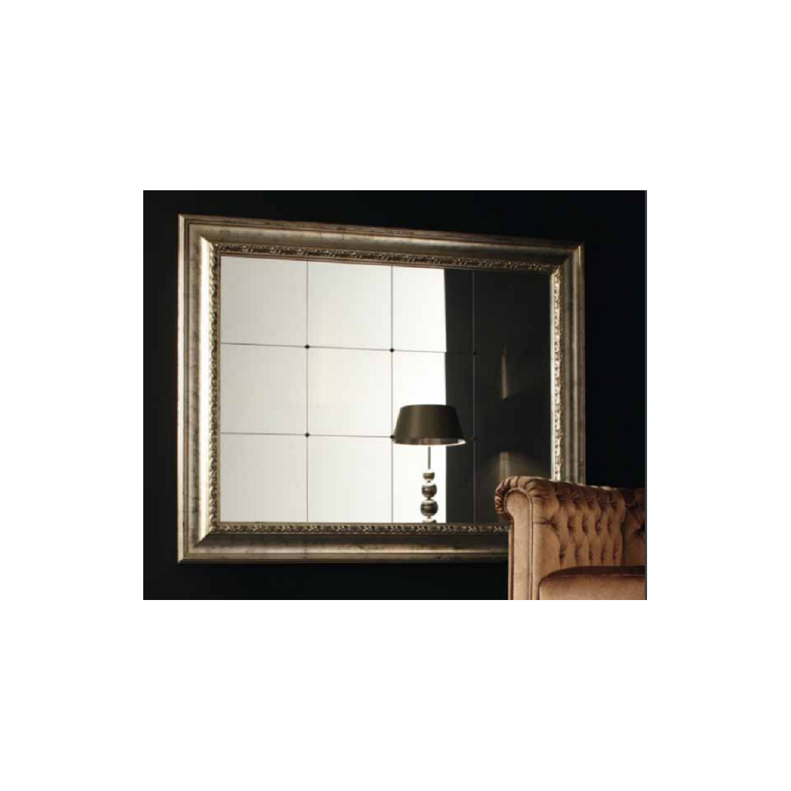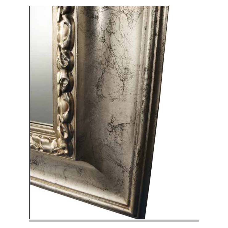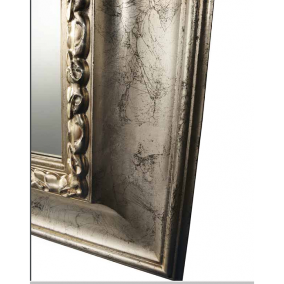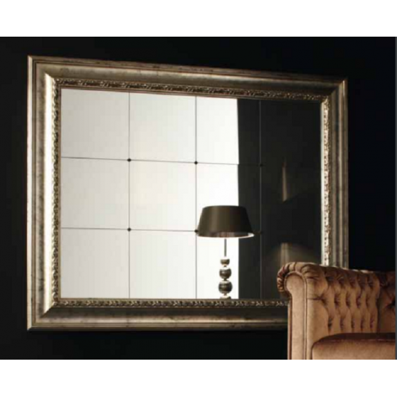 Miroir CL.2676 XL, cadre en bois, miroir central équarri ,Finition chaud argent antique, L.209 H.169.