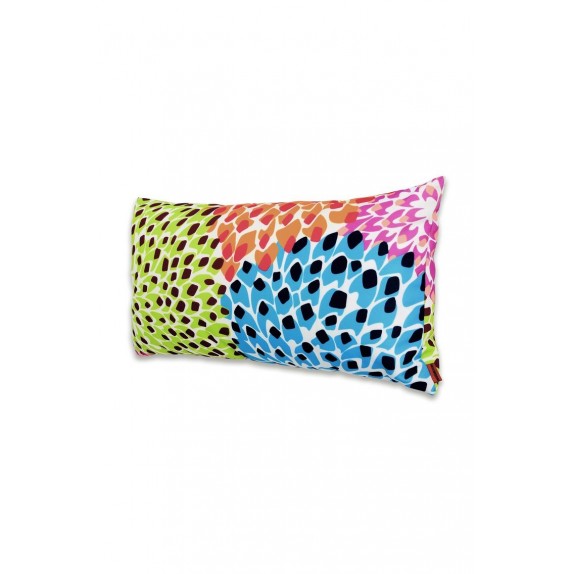 Coussin Dalia déco en tissu technique d' extérieur , imprimé à dahlias multicolores, 100 % polyester, revêtement interne spécifique pour un usage à l'extérieur. Dimensions : 60 x 30 cm