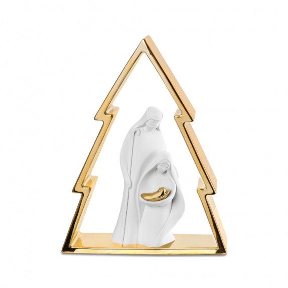 Décoration en forme de sapin de Noël représentant la Sainte famille.