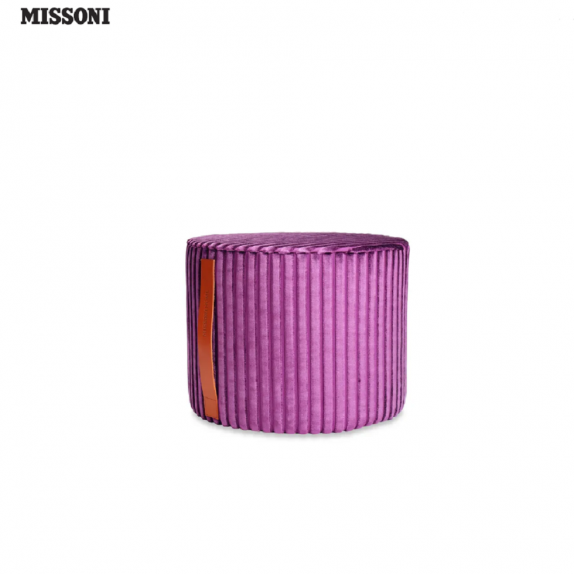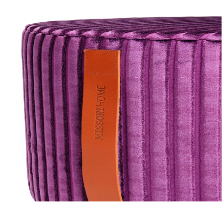 Pouf Cylindre Coomba déco en velours de viscose , teinte unie in velluto di viscosa à grandes côtes , déhoussable , avec poignée en cuir